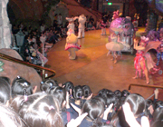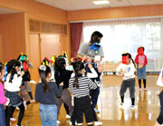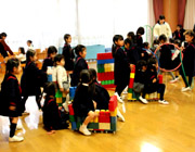 みんなでお友だちをお祝いしたあと、お楽しみの時間です。今回のお楽しみは、年長組が学園祭で演じた音楽劇「いばらひめ」を先生方が演じました。先生が衣装をつけて出てくると、みんなで大騒ぎです。一緒に踊ったり、歌ったりと楽しい時間は、あっという間に過ぎてしまいました。 |