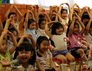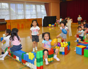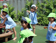 1日の生活の最後に新しく取り入れた、希望による預かり保育は、設定日には、ほぼ横倍の利用で定着しています。ご家庭の都合もありますが、子ども達のもっと幼稚園で遊びたい!との気持ちがかなう有意義な時間として、元気な声が響いています。1学期は、年中・年長組が対象ですが、2学期には年少組も始まります。 |