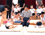 5月の母の日参観や6月の土曜参観では子ども達の様子をご覧いただくことが中心でしたが、今回は、幼稚園の活動に直接触れていただく機会として、親子体操教室と給食試食会を2日間に渡り設定しました。体操教室では普段のエピソードを交えながら楽しく進み、一緒に体を動かす中でおうちの方にブリッジや飛び込み前転の補助のコツが紹介されました。試食会では、子ども達と同じメニューを召し上がっていただき、味や栄養バランスなどに関するご意見をアンケート形式で伺いました。 |