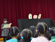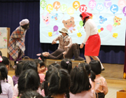 「ブレーメンの音楽隊」「ももたろう」「ヘンゼルとグレーテル」「アルプスの少女ハイジ」「にんぎょひめ」「ヘレンケラー」、登場人物を描いた紙をわりばしにつけ、セリフも自分たちで考えて演じる紙人形劇「ペープサート」の発表を年長組が行いました。たくさん練習した成果が表れ、年中組・年少組のおともだちは楽しいひとときを過ごしました。