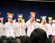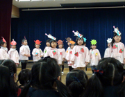 年少組は、年中・年長組のおねえさんやたくさんの保護者の方の前で少し緊張した様子でしたが、元気いっぱい劇遊び「おかしの星のくいしんぼう」を披露してくれました。