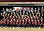 青空の下、平成23年度川村幼稚園卒園式が執り行われました。保護者の方が作ってくださったお揃いのお花を胸に年長組が式場に入場してくると、卒園児の保護者や年少、年中組のお友だちが大きな拍手で迎えました。園長先生から一人ひとり修了証書を手渡された園児たちは、「ありがとうございます。」と大きな声で答えていました。そして、今までの幼稚園での思い出とこれから小学生になる喜びと希望を胸に幼稚園を卒園しました。