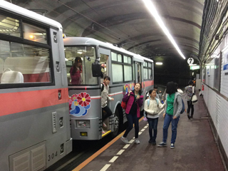 トロリーバスに乗り、黒部ダムへ向かいます。