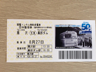 黒部ダムへ行くチケット。いい記念になります。