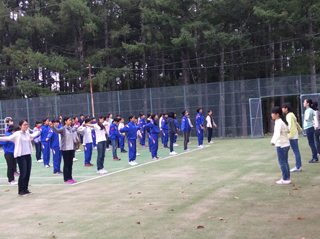 曇っていますが、外で朝礼を行うことができました。