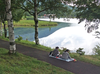 午前中は女神湖での写生会です。