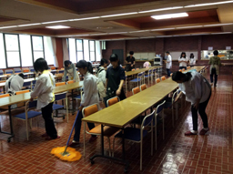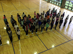 あいにくの空模様のため、朝礼は体育館で行いました。