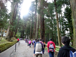 月見坂には、樹齢300年を数える幾本もの老杉が木陰を作っています。