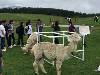 長門牧場ではアルパカや羊など、様々な動物たちと触れ合いました。