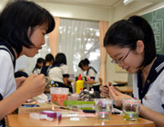 川村学園創立当初から続いている伝統行事「記念作業」が行われました。作品は、学園祭のバザーで販売し、その収益金の一部を義援金等に充てるため、一つひとつ丁寧に仕上げていきました。 |