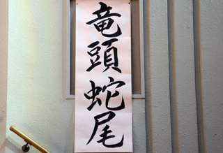 干支の「へび」にちなんで、今年1年間「竜頭蛇尾」とならないよう力いっぱい取り組んでいきましょうと話がありました。 |