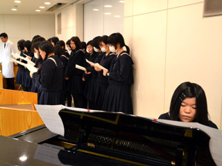 クラスの仲間が協力してクラスソングを作りました。発表会では、感謝の想いが、奏でる歌声から伝わってきました。 |