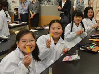 参観期間には保護者の方に第1回のクラブ活動も見ていただきました。氷の実験でアイスキャンディーを作りました。 |