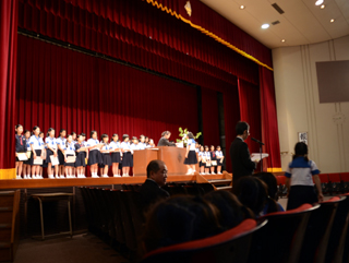 誕生者一人ひとりへお祝いの品が贈られました。今月は、教頭から月間目標「報恩」について、「誕生日」によせる人の気持ちについて話がありました。 |