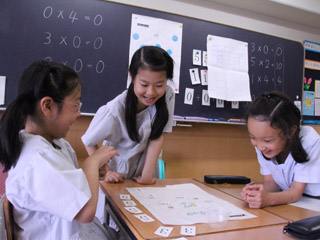 「点取りゲーム」をとおして、0(ゼロ)のあるかけ算の答えの出し方を学びました。