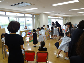ビデオを用いて、副校長より簡単に校舎案内をさせていただいたあと、3・4時間目の授業を自由に見学していただきました。小学校2年生生活科の縁日あそびでは、お子様方にも楽しんで参加していただくことができました。