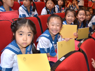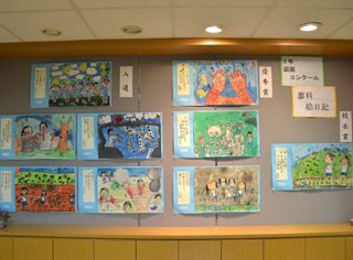7月誕生会の後、3年生の図画コンクールの発表があり、「蓼科絵日記」の作品入賞者に賞状と記念品が授与されました。 |