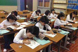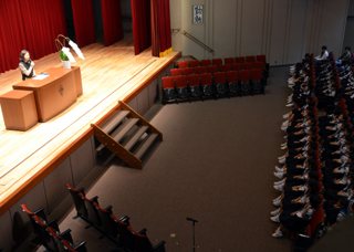 終業式が大講堂で行われ、副校長より、一学期の結果を振り返ること、夏休みの過ごし方と夏休み学校開放日について、話がありました。 |