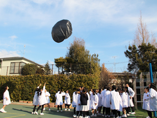 校庭から校舎内へ素早く避難しました。