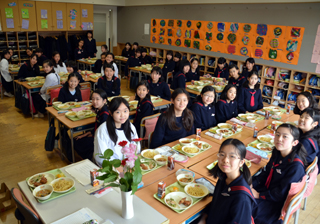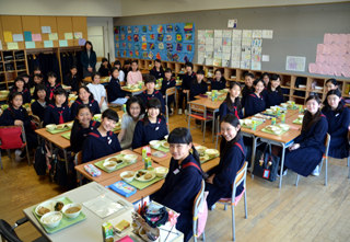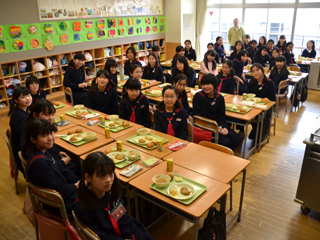 『私達は、6年間の洋食メニューの中で思い出に残る、もう一度食べたいメニューを考えました。ハンバーグとカリカリサラダという大好きな2品を食べられることができ、とてもうれしいです。みなさんも味わって食べてください。』