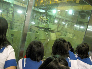 清掃工場に運ばれた「ごみ」がどのように処理されているか、ビデオでわかりやすく学んだあと、実際に処理をしている工程を見学しました。
