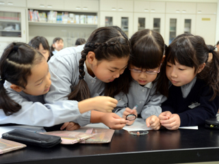 サケの卵が小学校にやってきてから約2週間。朝・休み時間・放課後、学年を問わず子どもたちは、理科室や水槽前に集まって観察をしています。 |