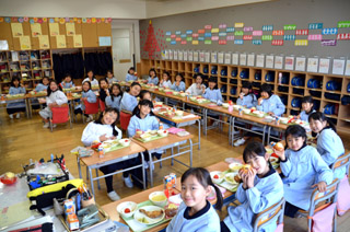 「あけましておめでとうございます。」全校児童そろって新年のご挨拶をしました。「去年よりも一日も長く目標が長続きするように頑張りましょう。」と話がありました。 |
