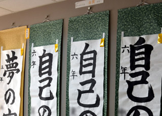 1・2年生は硬筆、3年生は毛筆(半紙)、4・5・6年生は毛筆(条幅)の作品を丁寧に仕上げました。会場は、いつも以上の緊張感に包まれていました。