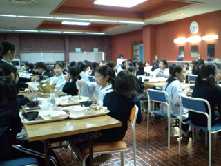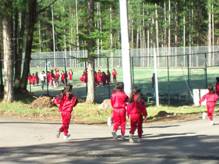 朝礼と体操をするため、校庭に集まります。