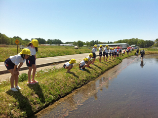 今日は田植え体験。田んぼへ向かって出発します。
