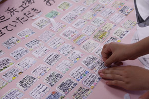 | 書き終わったら、曲がらないように気をつけてメッセージを貼ります。 |