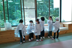 | これから入浴です。お風呂場でのきまりをもう一度みんなで確認しました。 |