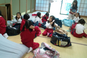 | 山荘内でのお絵かきの様子です。 |