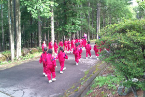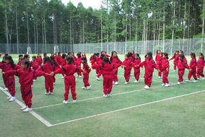 これから朝礼です。グラウンドに向かっています。 |