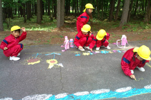 普段はできない広い場所でのお絵かきを楽しみました。 |