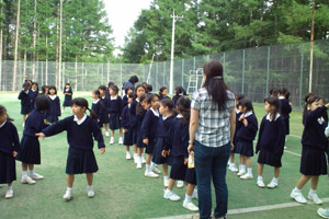 | 朝礼を行うため、グラウンドに出てきました。 |