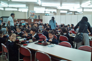 これから朝礼です。クラスごとに整列します。 |