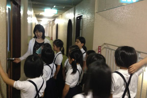 | 先生と一緒に部屋と非常口の確認をしました。 |