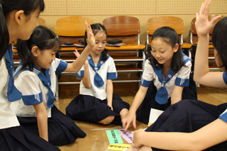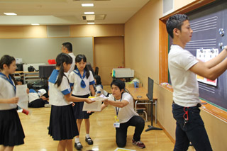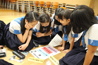 次はグループに分かれて、6つのニュース項目から3つを選び、どの順番で放送するか10分間で「編集会議」を行いました。