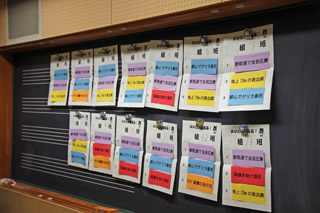 ニュース項目を選んだ理由と順番を発表します。朝の時間帯のニュースを想定して考えた班や国内外のニュースを、バランスよく取り上げた班など様々な意見が出ました。
