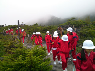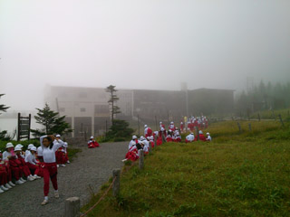 山頂に到着しました。今日は霧が立ち込めています。