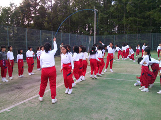 運動会の学年種目「とんでとんで」の練習をしています。