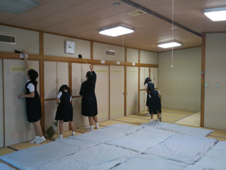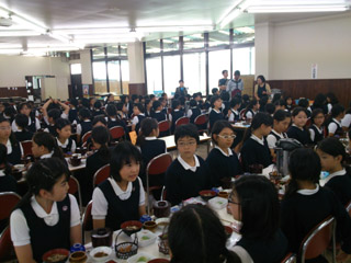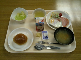 朝礼のメニューです。きちんと食べて最終日も元気に過ごします。