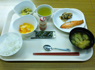 朝食をしっかり食べて、登山に備えます。