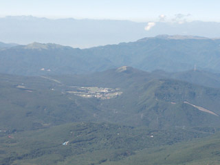 こちらは、山頂からの蓼科山荘を見た景色で、青い屋根が子どもたちが宿泊している山荘です。