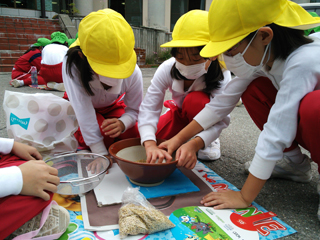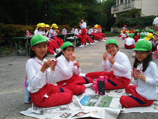 籾すりのあとは、みんなでおやつをいただきました。 |