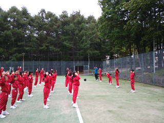 朝礼ではハイキングに備えてしっかり準備体操をしました。
