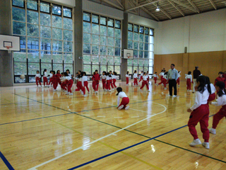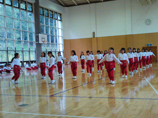 体育館で運動会の練習をしました。