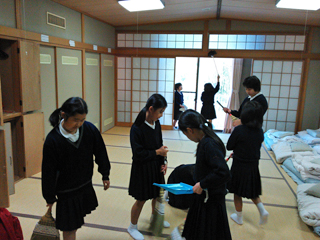 自分たちが使った部屋、教室などを手分けしてしっかりきれいにしました。 |
