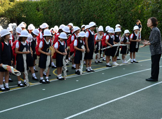 学校に全員無事到着し、刈り取った稲を持ち帰りました。 |